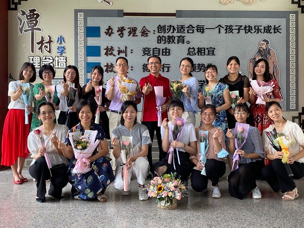 潭村小学语文科组教师手捧鲜花,彰显教师风采