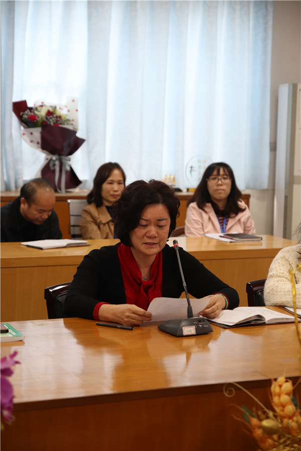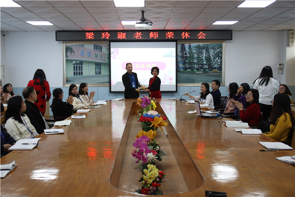 随后,阮汉潮校长对梁老师无私奉献的精神表示衷心的感谢,老教师是新教师奋发向上的动力,是年青教师的学习榜样,对她的辛勤耕耘,默默付出助力学校的发展给予了高度赞扬,祝福她在荣休后生活美满、身体健康,翻开新的人生篇章。