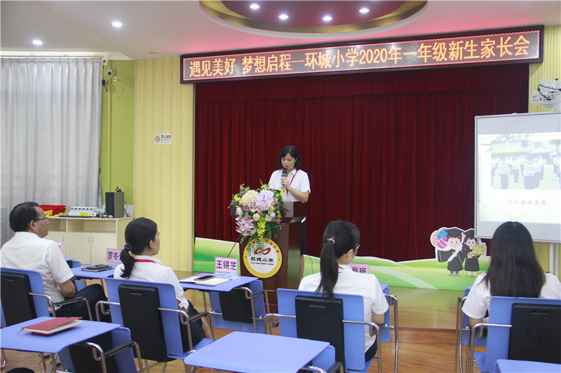 与此同时,家长们陆续进入五楼多功能室,参加一年级新生家长会。会议上,麦雪珊副校长代表学校致欢迎词,满怀深情地为家长们作美丽校园简介和“家校合作共赢”专题讲话,提出希望新生家长们能在以后的合作中,做到互相信任、互相尊重、互相理解、互相包容、换位思考。