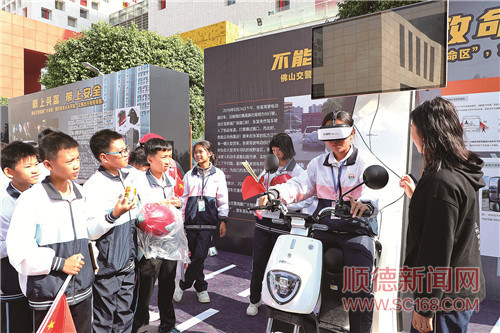 在佛山市第九个全国交通安全日宣传活动上,学生在现场体验区上了一堂交通安全体验课。/通讯员何海萍摄