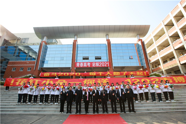最后,伴随着学校全体行政、学弟学妹的祝福声,高三全体师生在“奋斗2020,每个人都了不起!搏击2021,送你一朵小红花!”的夹道红幅标语中以自信坚定、激情昂扬的奋斗姿态登上大巴,奔赴战场!