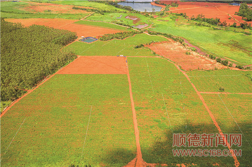 航拍陈家村与雷州市源果汇农业科技有限公司合作共建种植面积达千余亩的杨家镇番薯种植合作产业基地。/区扶贫办供图