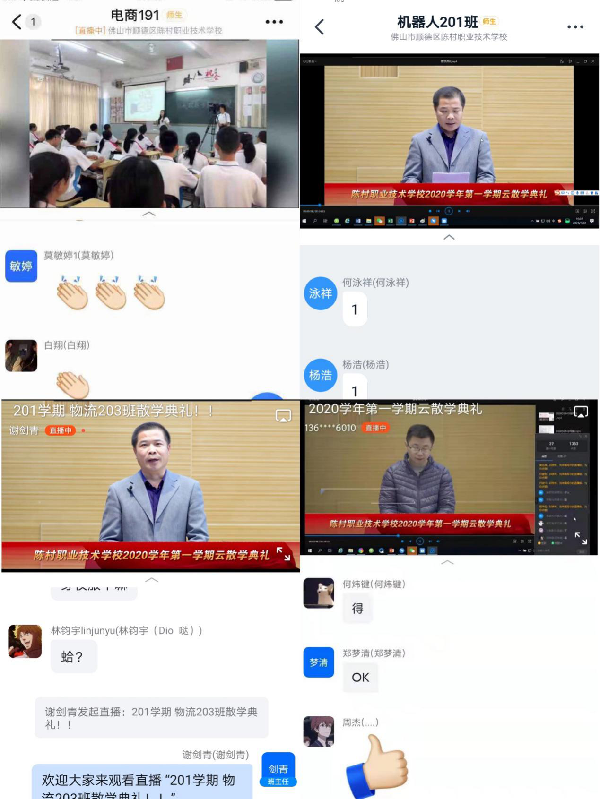 随后,顺德区第一职业教育集团党委书记、陈村职校校长梁泽洪在云端发表了热情洋溢的致辞。梁校长在致辞中强调,2020年是极不平凡的一年,虽然疫情当前,学校依然在教育教学和竞赛活动方面取得了骄人的成绩,这是全校师生共同努力的结果,希望2021年大家能够保持初心,砥砺前行。最后,梁校长对师生假期期间提出了几点期望,一是关注形势,加强科学防控;二是提高警惕,增强安全意识;三是合理安排,充实假期生活。