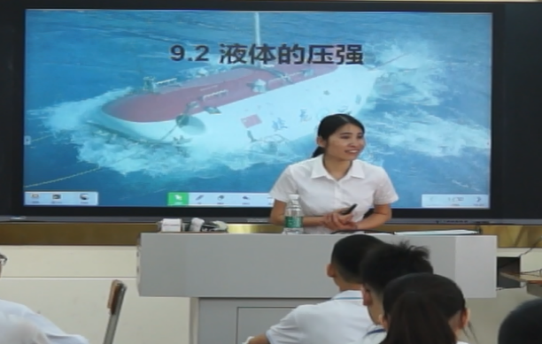 物理科组沈迪老师给大家带来了一节“互联?深度”展示课,课题为《液体的压强》。