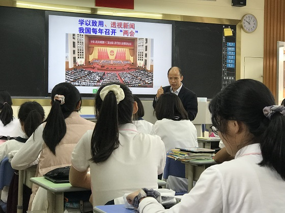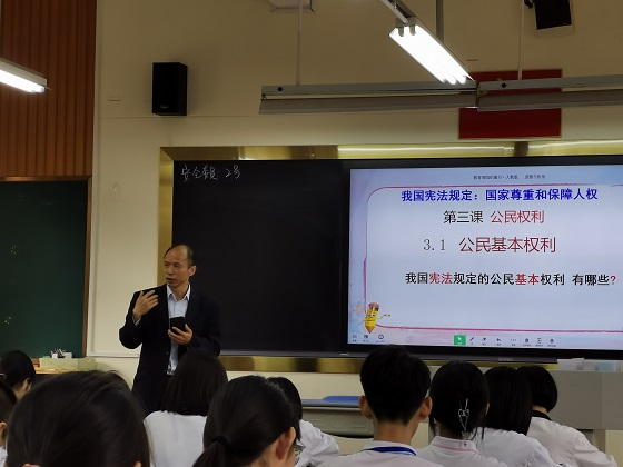 我校道法科江万里科长在初二6班以《公民的基本权利》为题,给同行们展示了一堂精彩的“互联?深度”智慧课例。