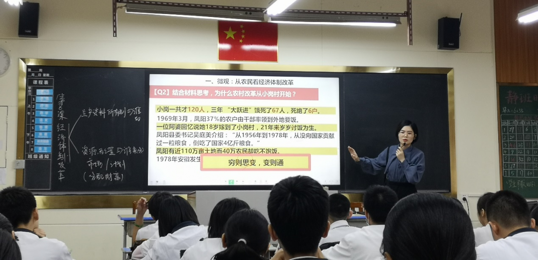 该课通过两个历史小人物、农村和城市经济改革、社会主义市场经济体制的建立与对社会主义本质认知的发展,从微观-中观-宏观三个层面解读中国的对内改革。课堂生动有趣,层次分明,能够比较深入浅出地解释晦涩难懂的经济学概念,受到了听课老师们的高度赞扬。同时,在此次教研活动中,唐老师进一步认识到任务驱动教学模式的意义及其实现的有效途径,更好地掌握了在中国现代史课程中渗透家国情怀的方法与途径。