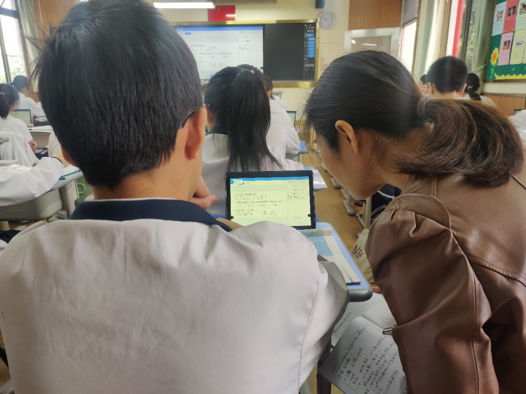 在课堂检测部分,江老师通过智慧课堂技术进行选择题检测,并根据检测结果及时调整教学策略,并根据学生展示出的学习难点,进行针对性辅导,大大提高授课效果与效率。