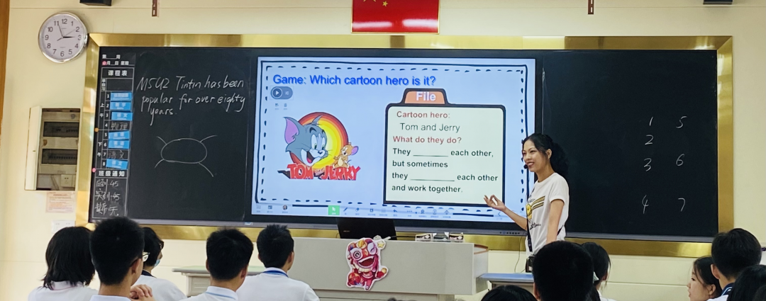 夏嘉琪老师选取外研版八年级下册Module 5 Unit 2《Tintin has been popular for over eighty years》 ,课型为阅读与思考。课前,夏老师先让学生利用智能教学平台预习词汇并且进行达标检测。在课堂上,夏老师利用希沃白板的游戏,使得整个课堂氛围轻松活泼,同学们都乐于参与到互动中。这次夏老师别出心裁地采取了拼图阅读(Jigsaw Reading),让孩子们都作为阅读过程的主人,使得学生的参与热情更加高涨。值得一提的是,在最后总结升华部分,孩子们都能在充分阅读的基础上,进行思维风暴,并且提出颇有深度的观点。