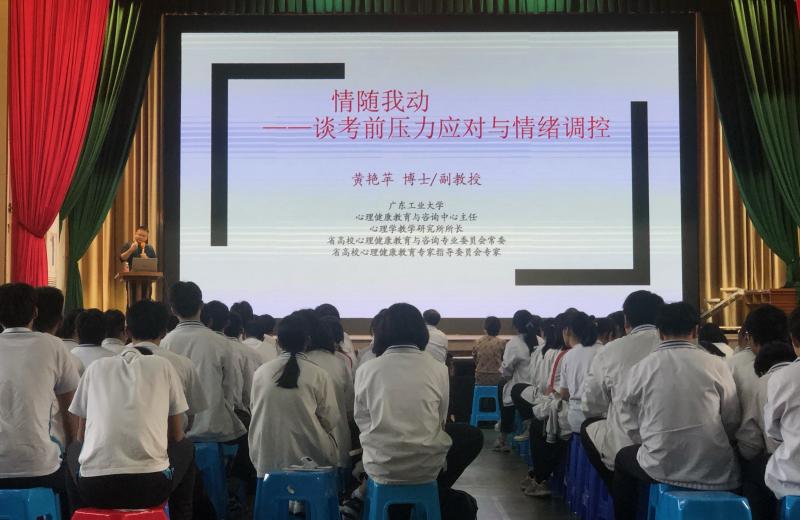 十年寒窗苦,一朝高考时。为了助力高三学子在备考期间保持良好的心理状态,缓解紧张的学习氛围,3月25日下午我校在礼堂开展了一场主题为“谈考前压力应对和情绪调控”的专题讲座,此次讲座由广东工业大学心理健康教育与咨询中心主任黄艳苹博士主讲。