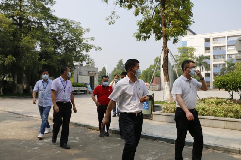 高建欢校长热情迎接龙书记一行人的到来。在高校长的陪同下,龙书记一行到校园各处了解开学首日的情况,走到教学区时还认真倾听了师生的上课情况。