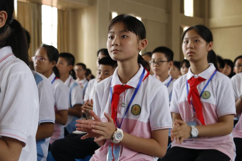 2020831号下午,文田中学2020800多名初一新生齐聚礼堂。鲜艳的红领巾整齐划一,他们的主人坐姿端正,正以饱满的精神和高度的热情进入初一级新生大会。
