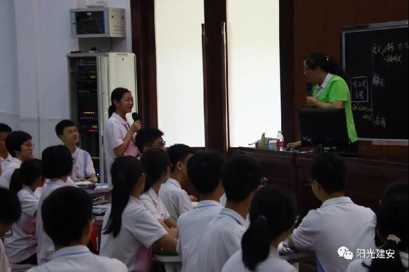 为贯彻落实教育高质量发展的精神,切实推进“壮腰工程”建设,着力提升初中教学与与备考质量,2020年9月17日上午,均安镇教育办在建安中学报告厅举办了初中数学教师培训活动。本次培训特邀广东省名教师工作室主持人、东莞市名师蔡映红给大家上了一节生动有趣的示范课:《第二章一元二次方程章节复习》。