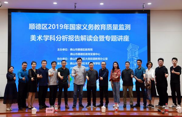 为进一步做好国家义务教育质量监测结果解读工作,充分认识监测工作的重要意义,引导美术教师树立正确的艺术教育质量观,促进学生综合素质的提升和身心的健康发展,2021年3月18日上午,由顺德区教育局主办,区教育发展中心协办的顺德区2019年国家义务教学质量监测美术学科分析报告解读会暨专题讲座在顺德区本真未来学校报告厅顺利举行。佛山市教育局教研室美术教研员陈日新老师,顺德区教育发展中心黄晨曦副主任,教育质量监测室徐安平副主任、詹火滥老师,教育教学研究室美术教研员王育群老师,各镇街美育专干、美术教研组长出席此次会议,会议由王育群老师主持。全区200多位中小美术骨干教师分别在十个镇街的分会场,以观看网络直播的形式参加了此次活动。