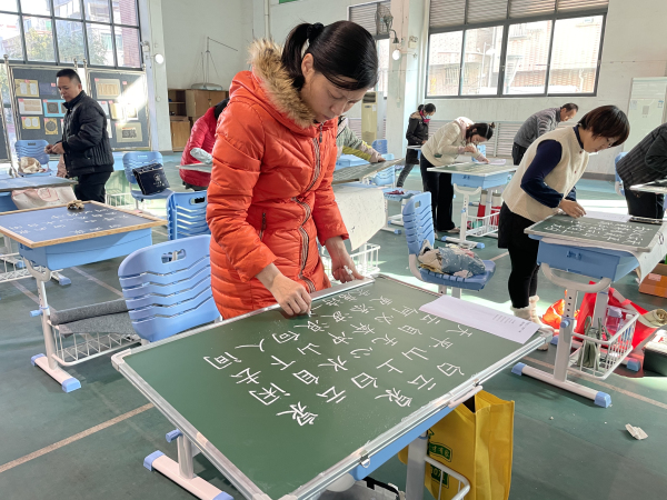 本次比赛为现场比赛,共设硬笔字、粉笔字、毛笔字三个项目。比赛过程中,聚龙小学的老师认真专注,纸笔交织,软硬互衬。钢笔字作品有的清丽婉约,有点隽秀挺拔;粉笔字作品有的刚劲有力,有的潇洒飘逸;毛笔字作品有的独具创新,有的刚健遒劲。中华传统文化的美,在笔尖行云流水而出。通过老师们的努力,陈涌聚龙小学获得以下奖项: