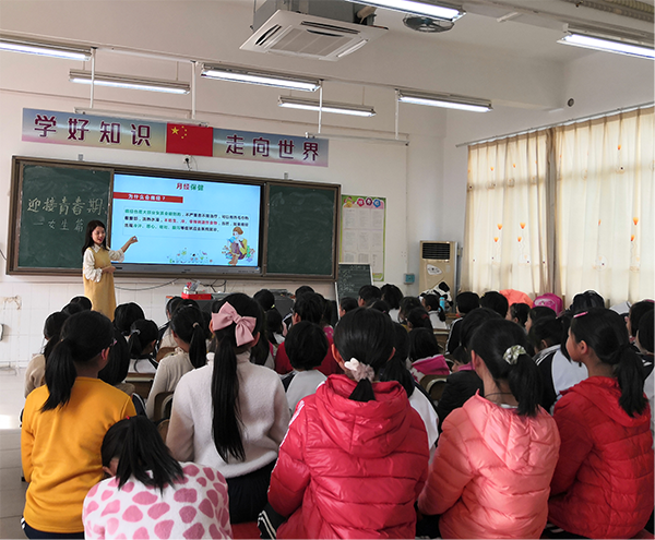 由于男女生生理发育结构以及发育的情况不同,本次讲座分为男女学生两批次分别进行,两个讲座均由龙江镇青春健康小组讲师杨翠雯老师进行讲授。