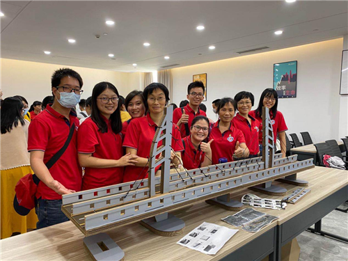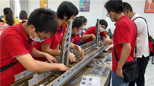在导游的带领下,党员教师们首先实地参观了建造基地。随后在会议室,聆听《港珠澳大桥与湾区桥梁亮点》讲座,了解大桥建设工作和运营情况,学习建设者不怕困难、自主创新的精神。最后分组搭建港珠澳大桥模型,在模型的搭建过程中更充分地感受这项世界级的超级工程的伟大,充分感受中国建造的力量之雄伟。