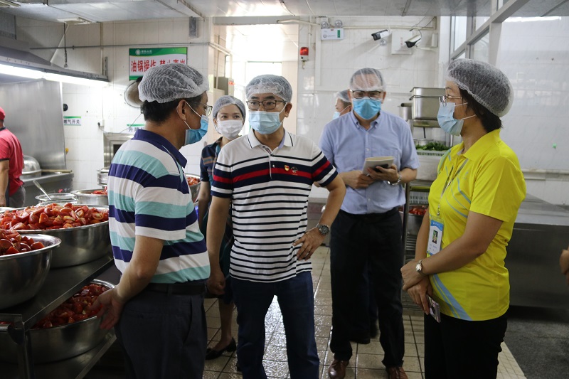 梁 滔一行先后到达培教小学、荔村小学和周君令中学,详细了解学生返校情况及学校的防疫措施。梁主任一行还深入课室与师生进行互动交流,了解返校师生的精神面貌,到饭堂进行食品安全检查。梁 滔副主任强调:一是各校要重视常态下的疫情防控工作,防控措施要到位。二是要特别重视食品安全卫生工作,严格把控食品进货渠道,规范食品操作,确保学生吃得安心、放心。三是要关注学生身心健康,让学生快乐学习,健康成长。