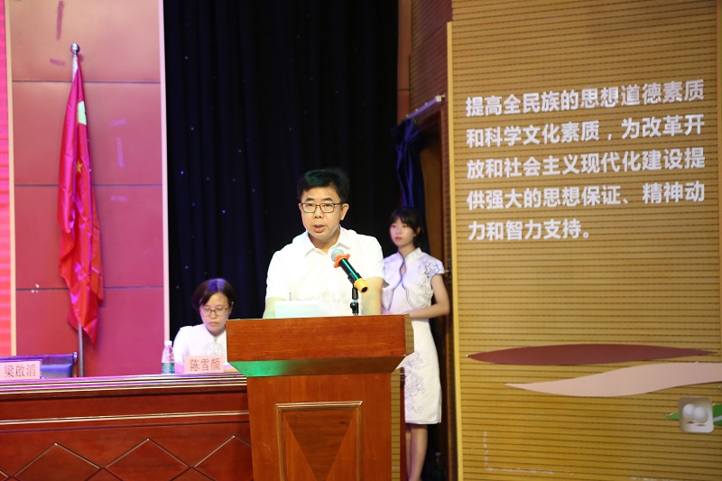 办事处副主任梁 滔在致辞中总结了伦教街道2019学年所取得的成绩,向教师们送去节日的祝福。党工委副书记梁伟华宣读表彰决定,大会表彰了常教居委会、伦教总商会、汇贤实验学校等67个先进单位,黎玉姗等355位先进教育工作者、优秀教师和满三十年教龄奖的教师,黄可宏等12位优秀家长,张美琪等550位取得优异成绩的学生。