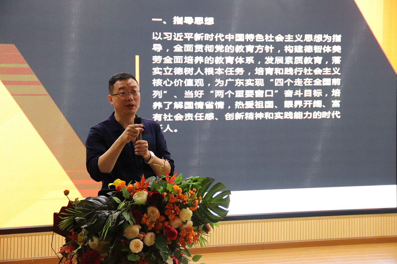培训的伊始,施美彬教授通过播放珠海中学生地理研学活动的视频,抛出问题“如何理解研学旅行?”让教师们发表见解。而后,施美彬教授分别从指导思想、育人目标、课程内容以及教学实施这四大方面,深入浅出地阐述了如何建设和实施研学旅行课程。其中,他重点指出研学旅行课程的建设与实施,需要激发学生对党、对祖国、对家乡的热爱之情,植入红色基因,创新教学实施和学习实践方式,以及突出研学旅行课程的育人价值。