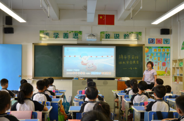 随后,黄梓恩副主任就防疫和防溺水再次进行强调,一要做好常态化疫情防控,不聚集、不到人员密集的场所游玩,外出佩戴好口罩,加强手卫生工作;二要做好防溺水工作,确实做到“六不准”,即:不准私自下水游泳,不准擅自与他人结伴游泳,不准在无家长或老师带队的情况下游泳,不准到不熟悉的水域游泳,不准到无安全设施、无救护人员的水域游泳,不准不会水性的学生擅自下水施救。随后全校师生观看防溺水视频。