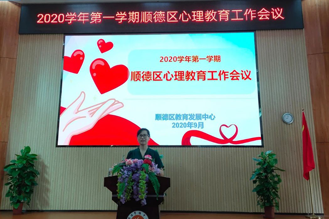 图1 顺德区教育发展中心主任陈萍老师主持会议