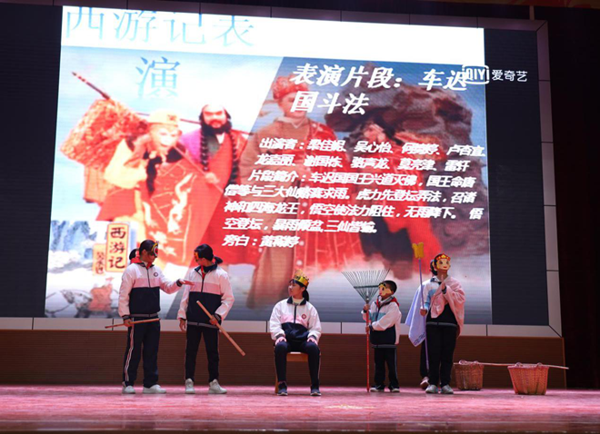 这次活动,各班的代表同学集合大家的智慧,写剧本、制作道具、配音,以小剧场的形式在舞台上为全年级师生表演了《西游记》中的经典故事,如158班的《猪八戒撞天婚》、159班的《二调芭蕉扇》、160班的《车迟国斗法》、161班的《三打白骨精》等,小演员们的表演十分精彩有趣,动作表情滑稽又不失活力。活动的现场精彩纷呈,赢得了师生们一阵又一阵热烈的掌声。极大地激发同学们阅读名著的兴趣。