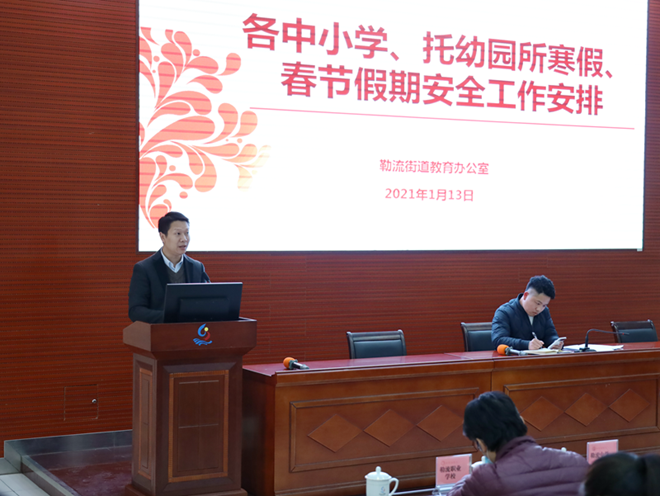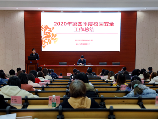 街道教育办公室甘永杰同志总结2020年勒流街道第四季度校园安全工作情况,布置各中小学、托幼园所寒假、春节假期的安全工作,部署2021年第一季度校园安全工作,部署全街道中小学、托幼园所学期末安全巡察工作。