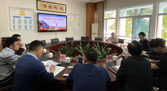 随后,调研组跟学校中层领导、智慧课堂任教老师、信息化设备管理老师做了详细交流,进一步了解学校信息化项目及功能室场设备具体情况。