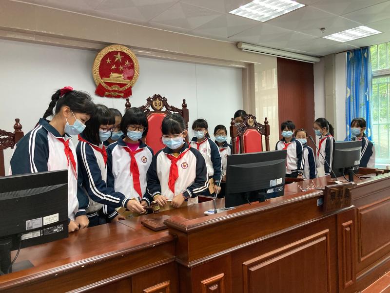 活动中,法庭工作人员带领同学们参观了法庭的审判庭和各工作区域,向他们介绍了民事审判庭的坐席位置安排和庭审流程,讲解了我国的审判制度和各种司法设施的用途。