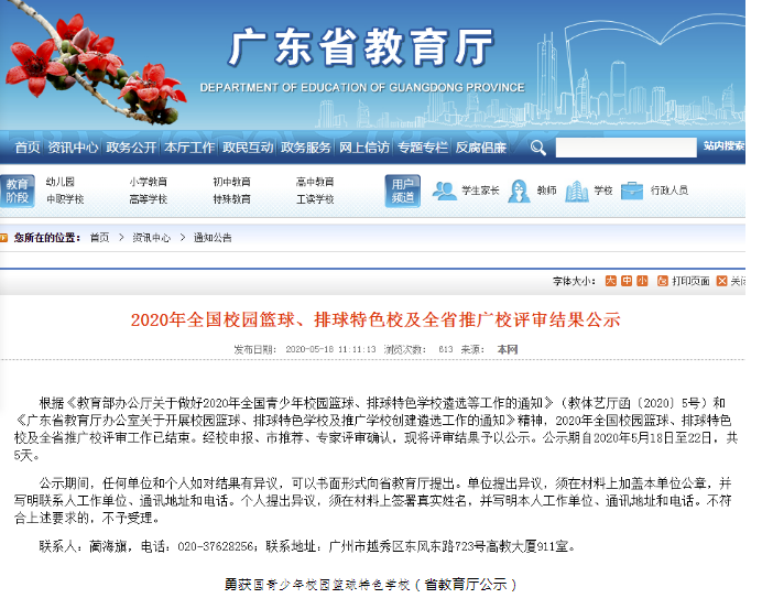 2020年5月,顺德华侨中学又被评为全国青少年校园篮球特色学校(已经公示)!