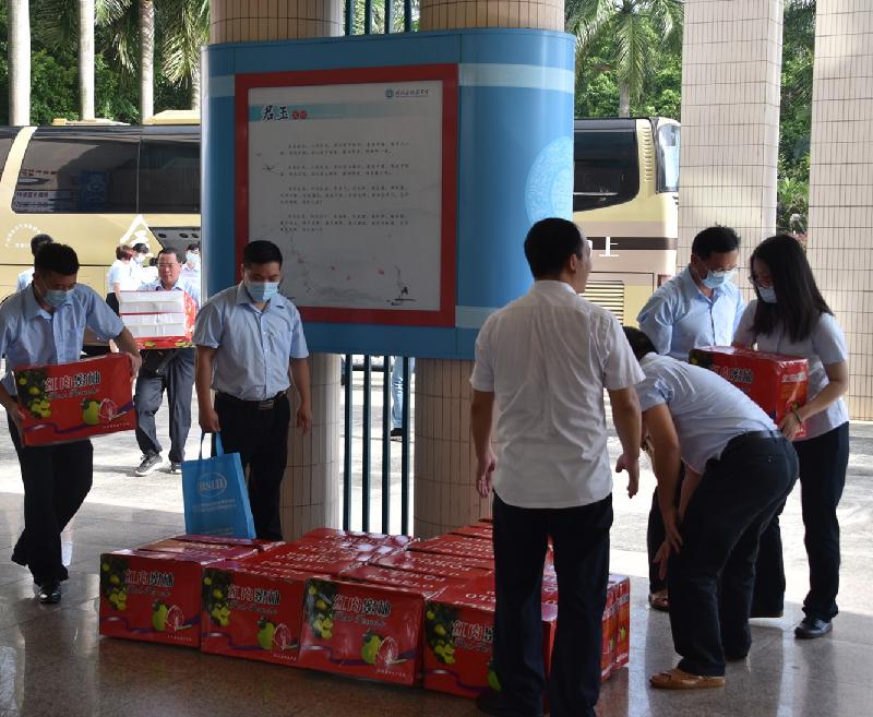 感谢梅州东山中学梅县新城分校给均安中学老师带来当地特产