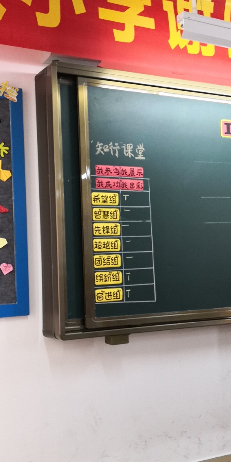 在新课伊始,谢老师根据班级学生的个别差异性,在班别设立了7个学习小组,每组约6-7人。并让每个小组介绍自己独具特色的组名以及别具一心口号,有“希望组”、“智慧组”、“先锋组”、“超越组”、“团结组”、“缤纷组”和“奋进组”。
