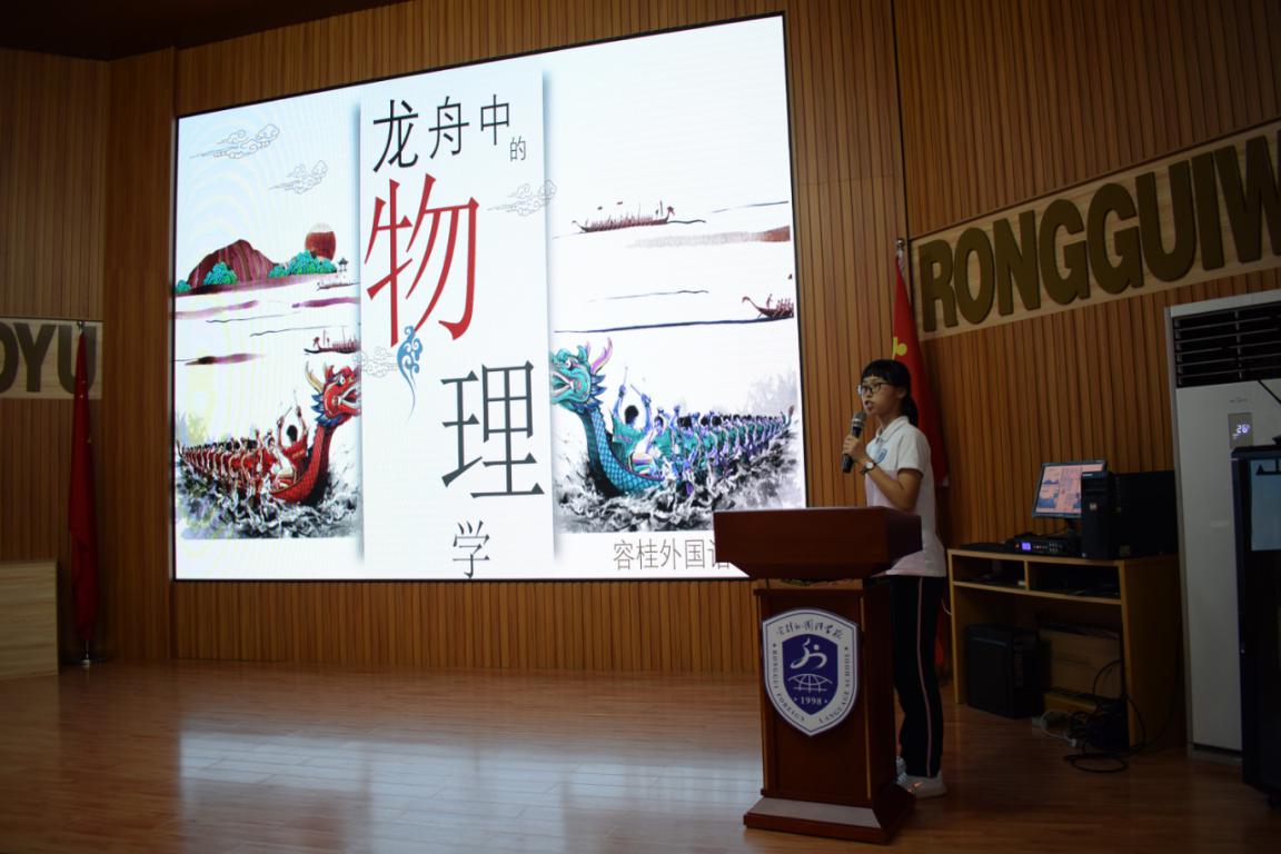 来自容桂外国语学校的陈铭瑞正在作《龙舟中的物理学》的开题报告。
