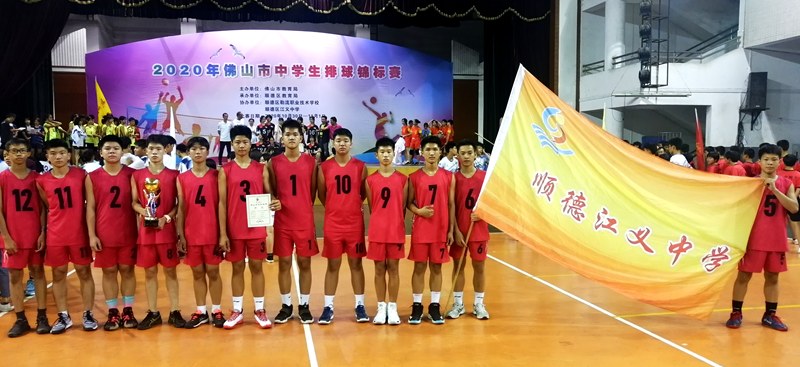 2020年10月30日至11月1日,由佛山市教育局主办,顺德区教育局承办,顺德区勒流江义中学和顺德区勒流职业技术学校协办的2020年佛山市中学生排球锦标赛圆满落下帷幕,来自全市五区和市直属学校共21支球队248名运动员齐聚勒流。江义中学男子排球队代表顺德区初中男子组参赛,经过3天的比赛,凭借主场优势,再次蝉联佛山市中学生排球锦标赛初中组冠军,实现五连冠。梁文爽同学评为最佳运动员,伍剑华老师评为优秀体育指导老师。