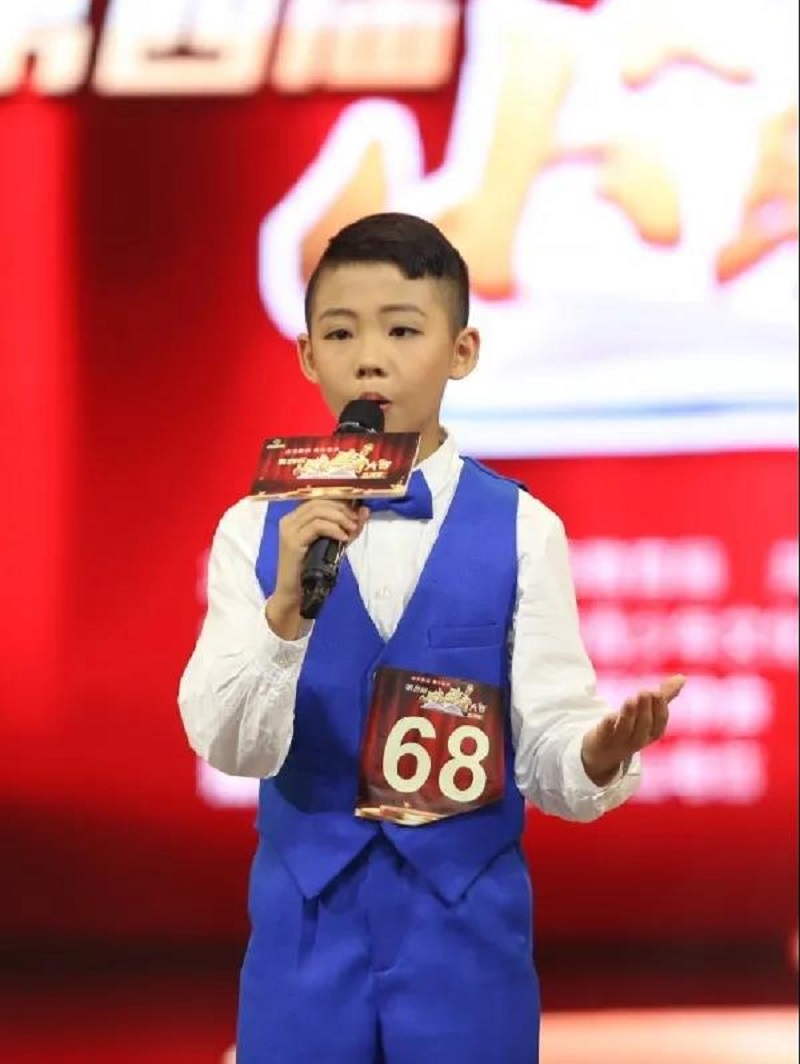 总决赛现场黄一泓同学正在朗诵作品《我妈妈》