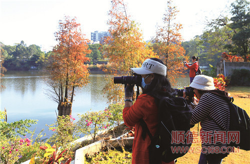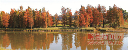 伦教河涌边成片金黄色水杉。