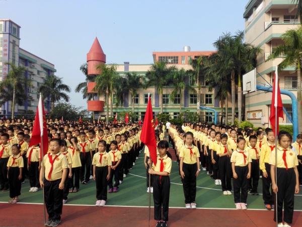 然后,在辅导员老师的带领下,全体少先队员在队旗下光荣宣誓和呼号:时刻准备着!表示他们决心听从党的教导,努力成为社会主义建设需要的合格人才,做共产主义事业接班人。