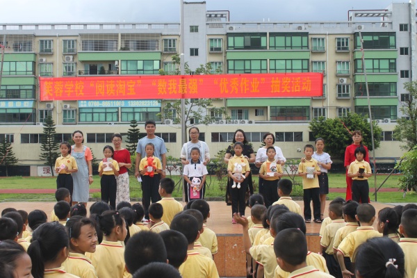 6月24日上午,芙蓉学校举行阅读淘宝暨阅读考级颁奖活动。活动在芙蓉学校操场举行,当主持人宣布阅读淘宝活动正式开始,芙蓉学校的教师们就拿着准备好的精美礼物走上抽奖台。随着抽奖音乐声响起,一位位幸运儿诞生了,被老师抽到并得到奖品的同学脸上都洋溢着灿烂的笑容,活动现场充满了欢声笑语。