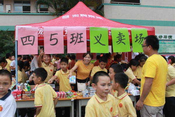 31日下午,义卖活动在《爱的奉献》歌曲声中拉开序幕,同学们将自己闲置的学习用品、书籍、毛绒玩具、手工艺品、手工制作饰品、个人创作的书画作品等纷纷捐献出来义卖。展台、义卖海报布置得五彩缤纷:“义卖有价,爱心无价”、“因为有爱作音符,美好生活能共谱!”整个校园充满了浓浓的爱意。学生们脸上挂着灿烂的笑容,在热闹的气氛中庆祝自己的节日。在老师和家长的组织引导下,孩子们分工合作,互相选购,买自己喜欢的物品,献出自己的爱心,整个现场热情似火,每个家长和孩子的脸上都洋溢着收获的喜悦。