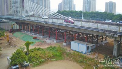 南外环岐江河大桥拆除支撑系统已经安装完毕。