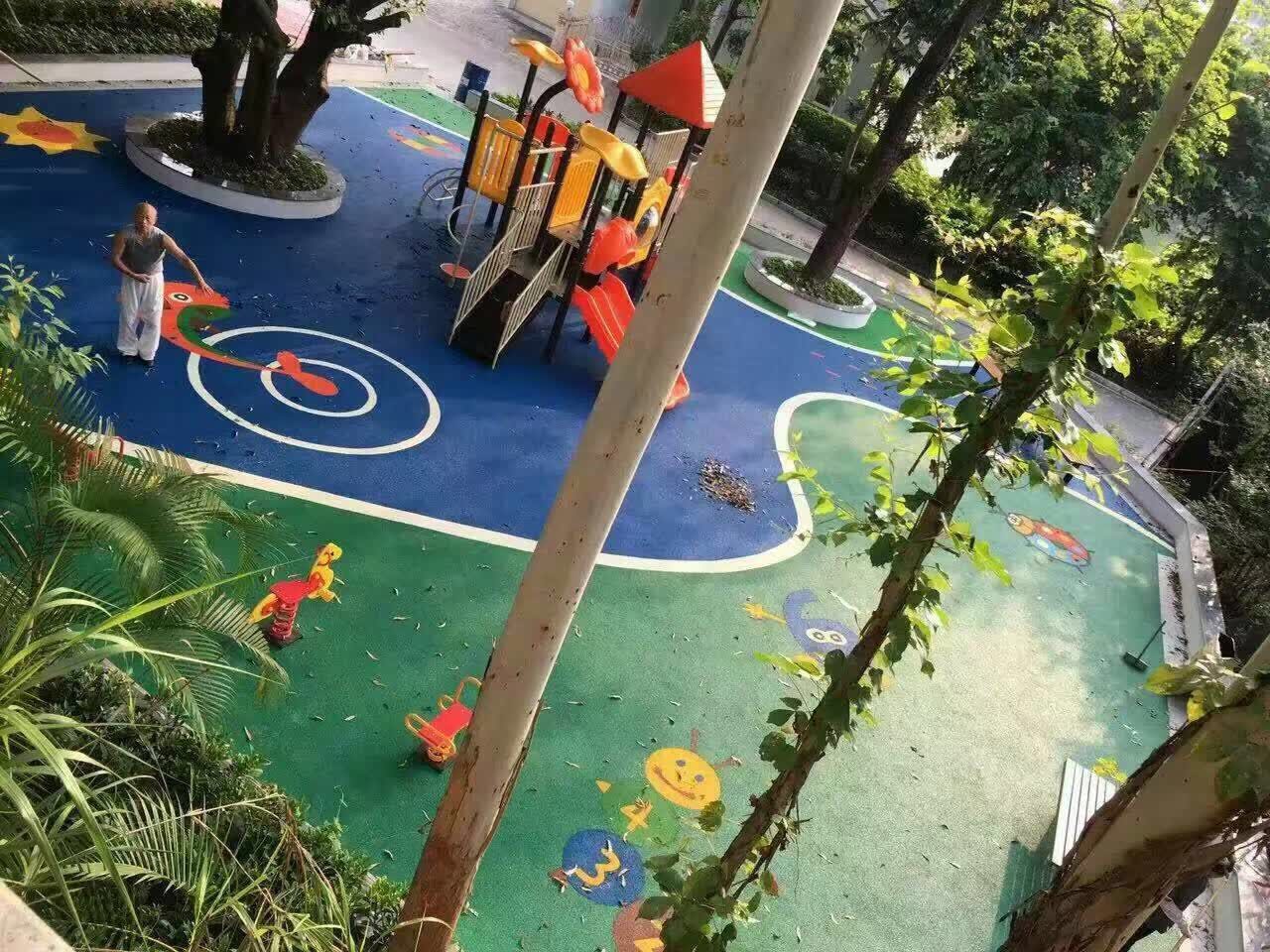可根据现场免费设计不同的图案,EPDM颗粒多色可选,提供一手运动器材货源,