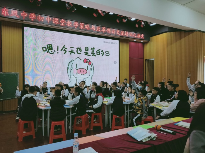 此次培训活动涉及英语、数学、语文、历史等学科,各学科分别邀请叶邦贵、邓铁文、杨祥明等名师走进校园,为广大师生带来课堂教学展示。各个名师以独特的教学设计、深厚的专业素养和个性鲜明的教学风格等展示了一节又一节令人耳目一新的课堂教学。其中,杨祥明执教的《背影》令人印象深刻。他以“东凤中学的校训”为话题,激励学生要自强、自信;以学生为课堂的主导,引导学生立足文本,仔细品味《背影》中的语言,从中理解父子之爱。整堂课立足语文学科核心素养,注重学生语言、思维等能力的培养,关注学生的独特感受和创新表达,于朴实中见风采。全体教师也陶醉其中,获益良多。