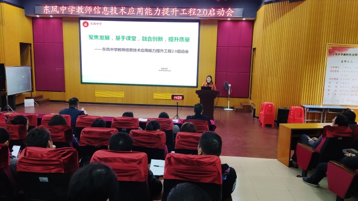 为深入贯彻教育部、广东省、中山市关于信息技术应用能力提升工程2.0文件精神,全面促进信息技术与教育教学融合创新发展,东凤中学于1月17日上午在学校报告厅召开信息技术能力提升工程2.0启动会。学校全体教师参加了会议。