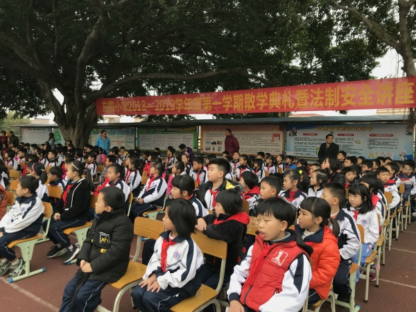 沐浴着冬日暖阳,孩子们即将迎来愉快的寒假。为了让孩子们能度过一个快乐、充实、安全的假期,1月18日上午,东罟小学召开了2018学年度第一学期散学典礼暨法制教育会议。东罟小学全体师生参加本次散学礼活动。