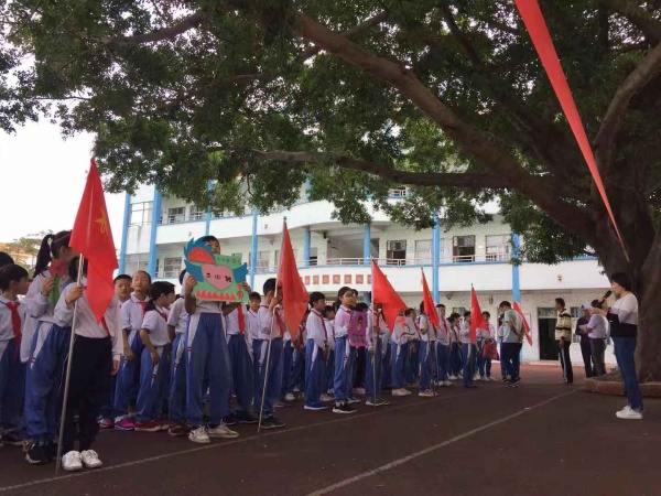 下午2点整,各班级有序进场,他们举着各自精心设计的班牌,踏着整齐划一的脚步,震耳欲聋的口号声响彻校园东罟运动会开幕式正式开始。陈名胜主任致运动会开幕词,随后总裁判代表冯权光老师代表各裁判员宣誓,最后,在主持人的宣布下东罟小学2018年体育田径运动会现在开始。