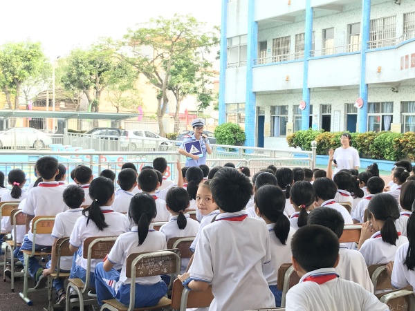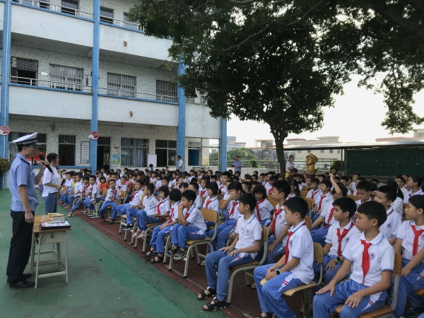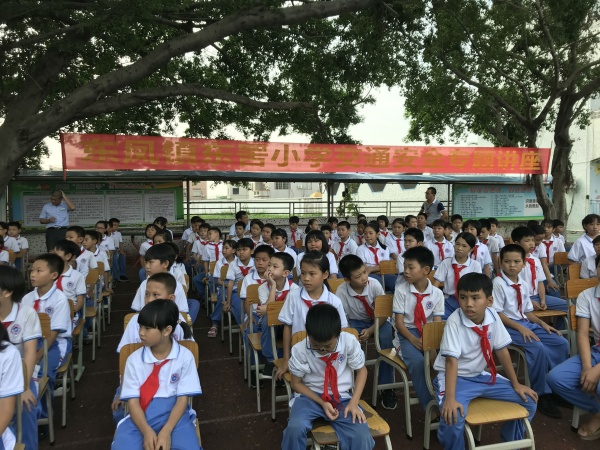 为了保障学生的出行安全,积极引导未成年人自觉遵守道路交通安全法律法规,预防和减少道路交通事故伤害,2018年9月20日,东凤镇公安分局交警大队陆警官为东罟小学全体同学开展了一次以交通安全主题的知识讲座。