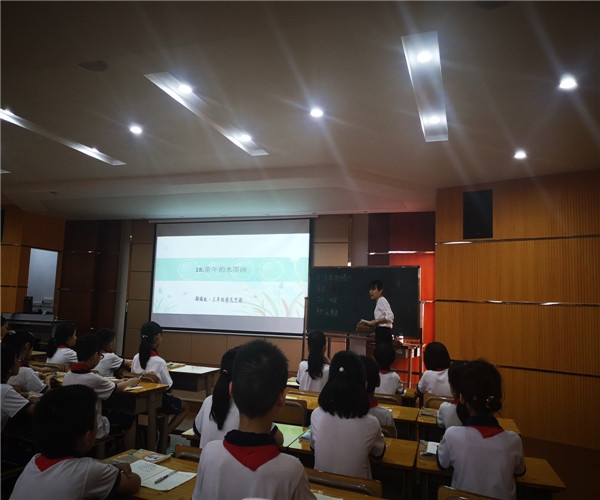 为了加强新教师备课上课的时效性、促进新教师跟快发展,2019年4月26日星期五,在邱道远主任的带领下,凤鸣小学三年级新教师黎建芸、廖仕敏出发小榄镇永宁中心小学参加五校联盟新教师研讨会。参与本次三年级新教师研讨会的新教师还有来自小榄中心小学的胡丽丽、欧丹婷、卢敏宁、罗榆玲、今卓。研讨会于早上8点开始,分为作文场和同课异构《童年的水墨画》两场分别进行。