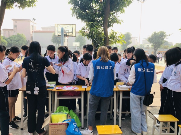 活动当天,众联社工的工作人员一早便到校摆好禁毒宣传摊位并派发禁毒宣传单,现场解答学生提出的问题。通过专业的解答,学生了解到毒品的危害、毒品种类、如何正确抵制毒品等知识。为加深对毒品的认识,工作人员通过展示仿真毒品模型、开展禁毒知识问、,禁毒拼图等活动,调动学生积极性。现场气氛活跃,学生纷纷表示会自觉拒绝毒品,主动跟毒品说“no”。在工作人员组织下,学生宣读禁毒誓言。在现场采访环节,学生表示回家,会积极和家长一起参与到禁毒宣传工作中,把禁毒工作向家庭辐射和延伸,扩大禁毒工作覆盖面。