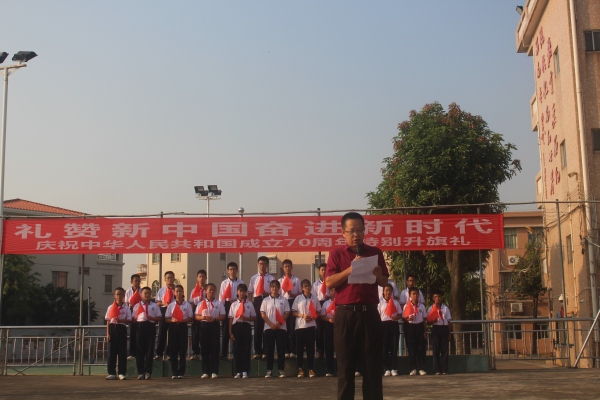 ——东凤二中庆祝中华人民共和国成立70周年特别升旗礼活动发布时间:2019-09-30 17:24 信息来源:本网站 浏览次数:37