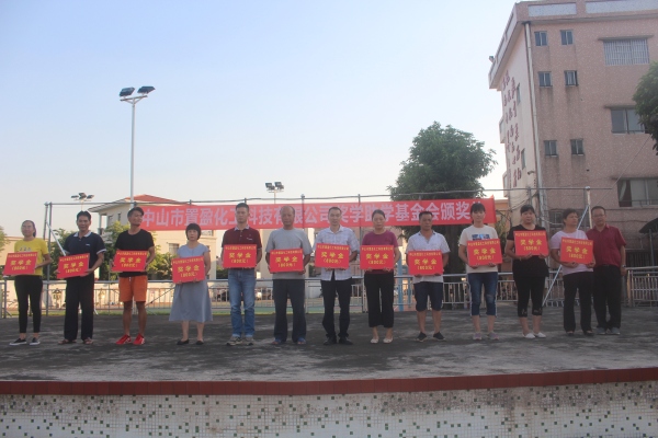 在新中国70华诞即将到来之际,9月26日,东凤二中在学校田径场举行第四届中山市置盈化工科技有限公司奖学助学基金颁奖典礼,全校共有19人次获得奖励。置盈化工奖学助学金是由东凤二中九一届热心校友设立,旨在奖励在中考、高考中取得优异成绩的学生。本次活动由德育处组织。